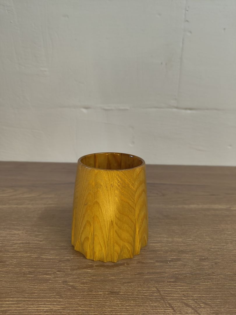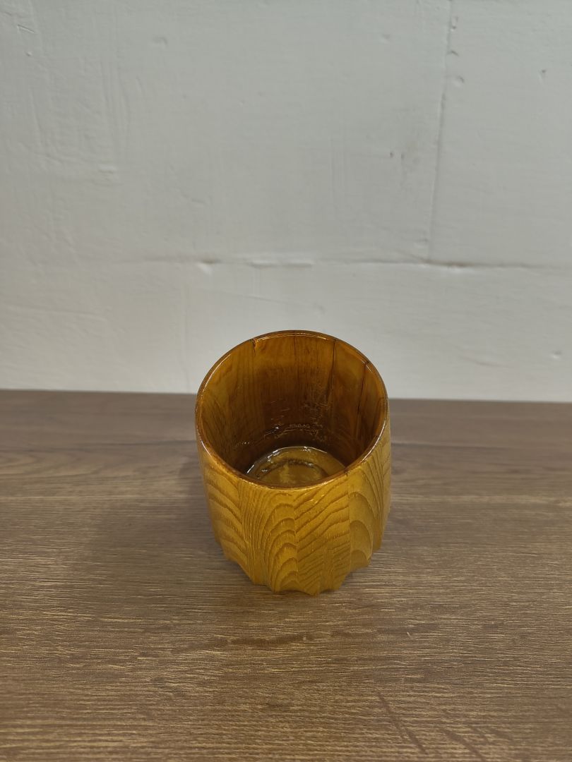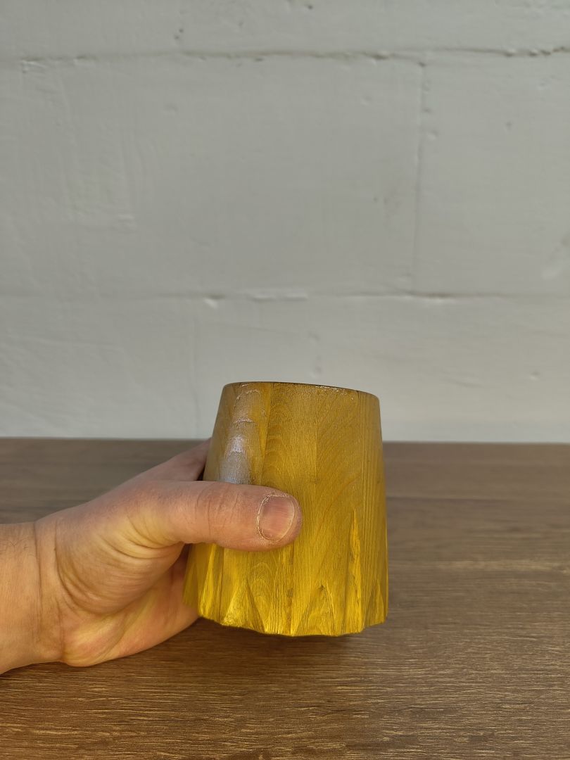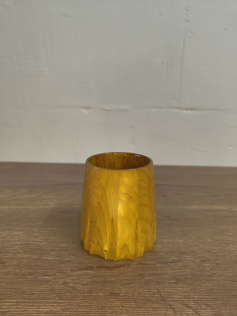 Entdecke unseren exquisiten 0,3 Liter Becher, der nicht nur durch seine formschöne Gestalt besticht, sondern auch mit einzigartigen Kerben veredelt ist, die an eine Revolvertrommel erinnern. Jeder Becher wird in sorgfältiger Handarbeit gefertigt, wodurch jeder einzelne ein Unikat mit ganz eigenem Charme wird.