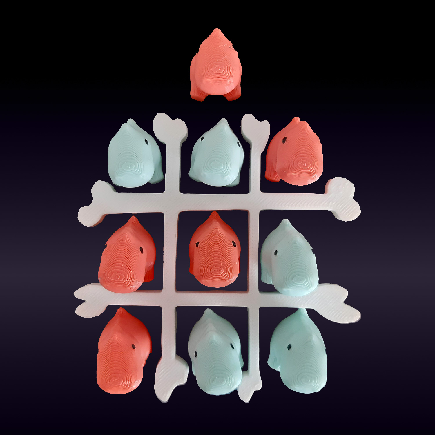 Este pacote contém 10 miniaturas de duas cores + 1 tabuleiro em forma de osso.