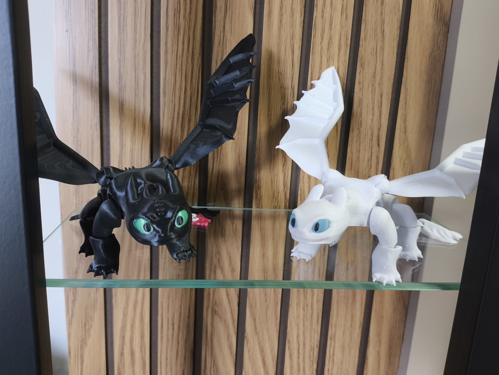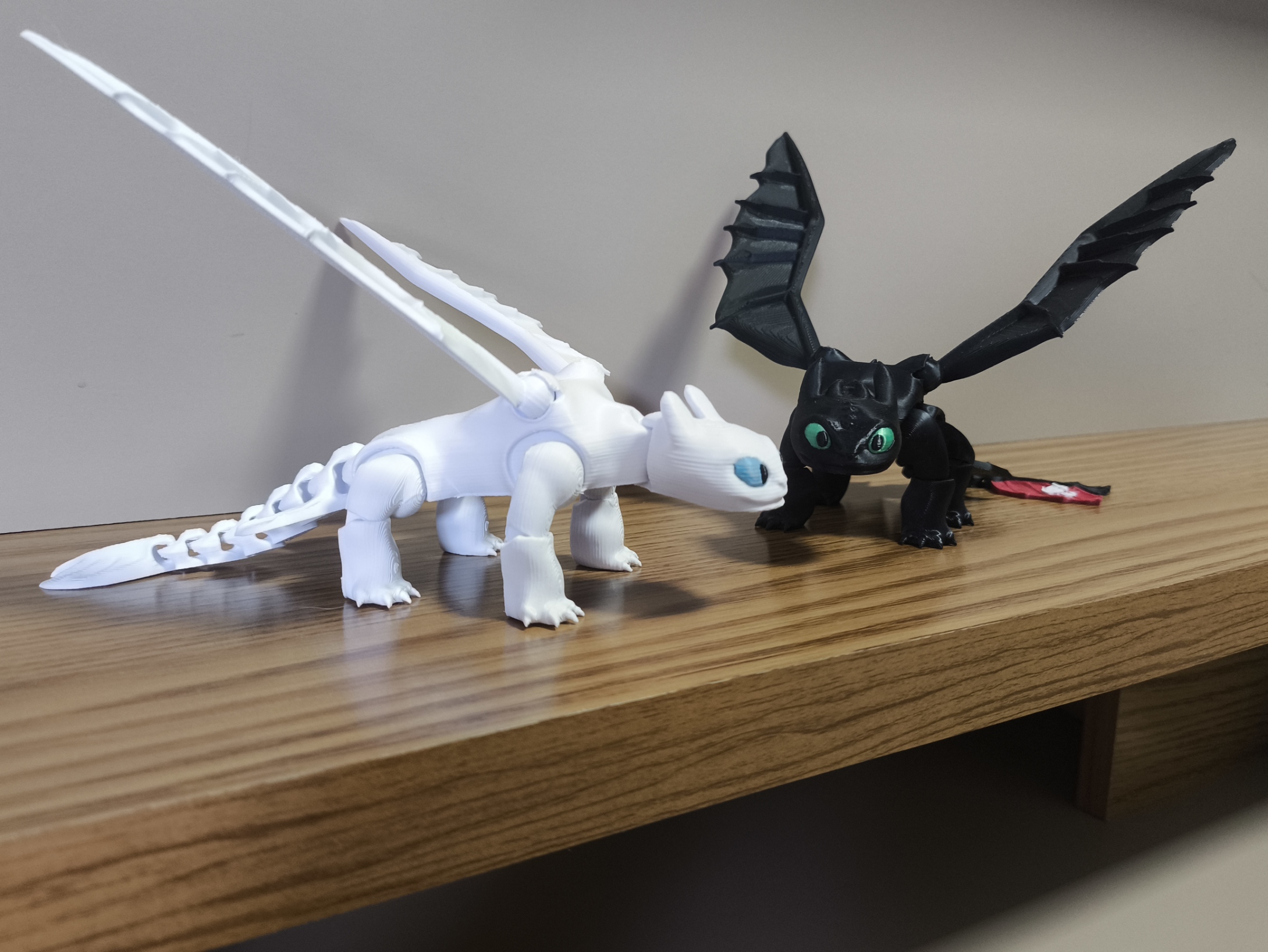 🖨️ Modelo 3D do casal de dragões Banguela (Toothless) e Fúria da Luz (Light Fury) impresso em PLA ecológico, inspirado no filme Como Treinar o Seu Dragão.