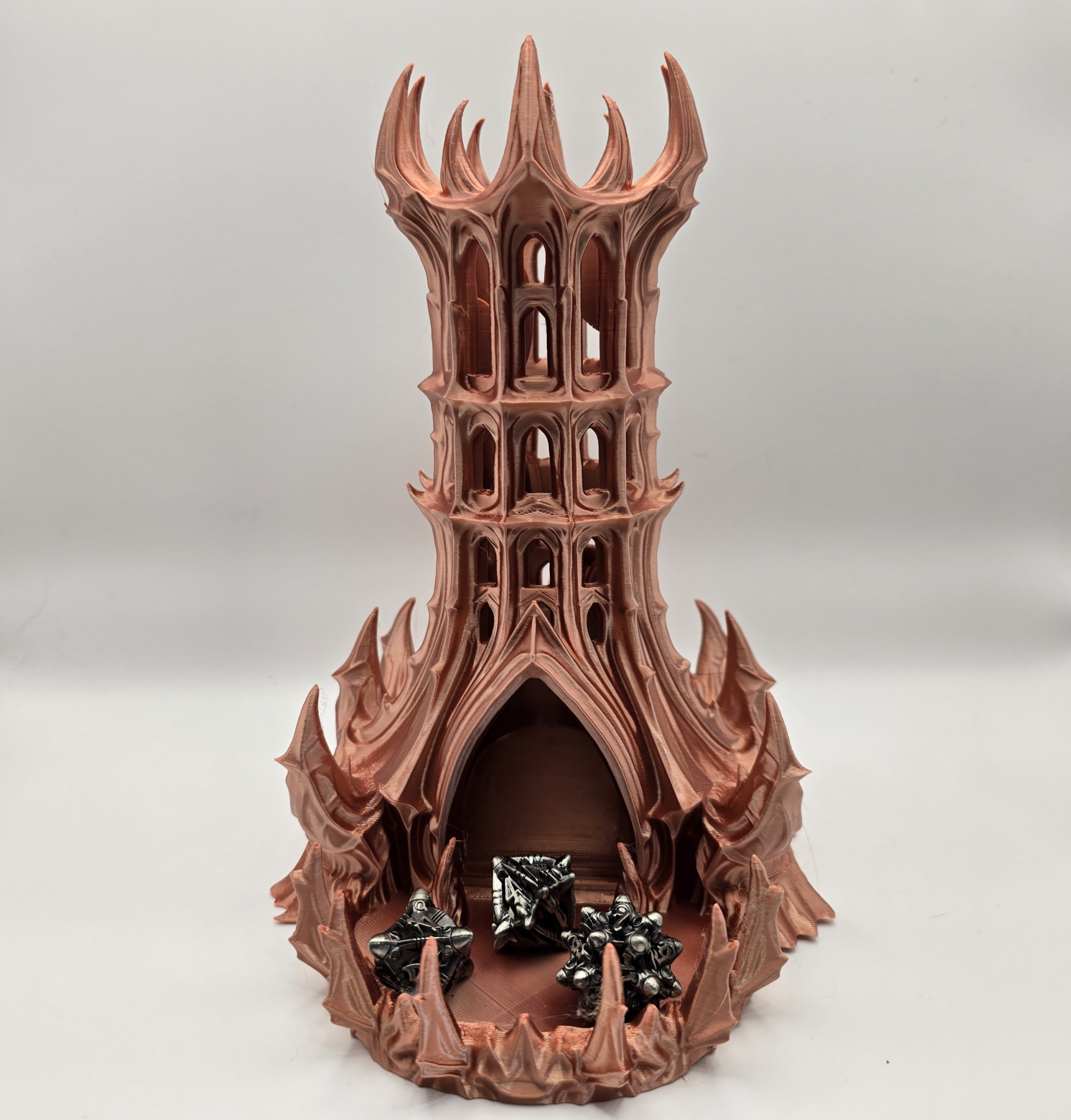 Citadel dice tower. Available in multiple colors and filament types (Silk, Matte, & Basic). In the event that we don’t have a particular filament in stock, there will be additional time in shipping.