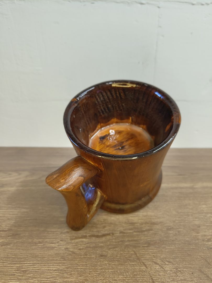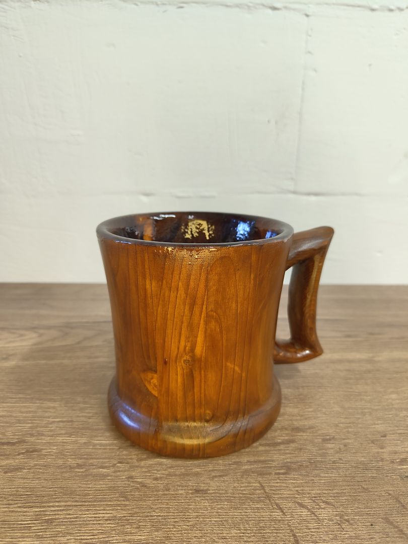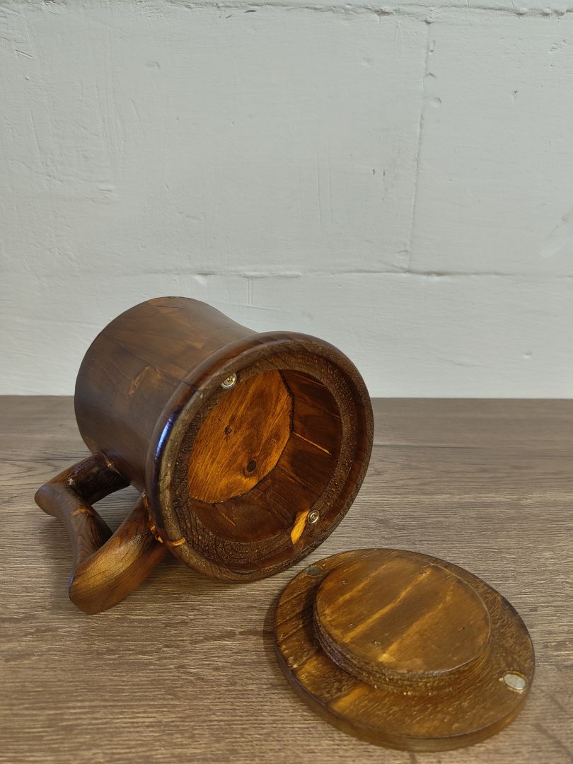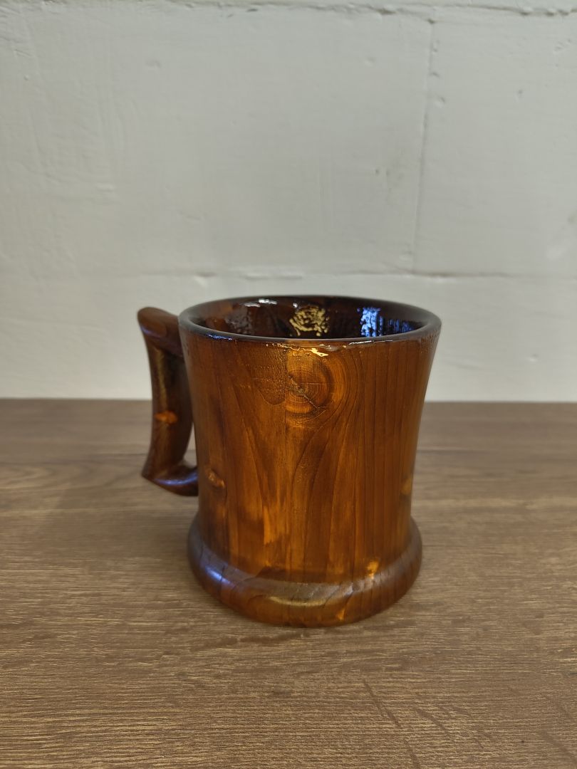 Dieser 0,5 Liter Humpen ist ein einzigartiges und nachhaltiges Trinkgefäß, das aus recyceltem Palettenholz gefertigt wurde. Mit viel Liebe zum Detail gedrechselt und in Handarbeit hergestellt, vereint er Funktionalität und ästhetisches Design. Der Humpen ist gebeizt, um die natürliche Holzmaserung hervorzuheben, und innen mit einem alkoholbeständigen und lebensmittelechtem Kunstharzlack lackiert, sodass er ideal für verschiedene Getränke ist.