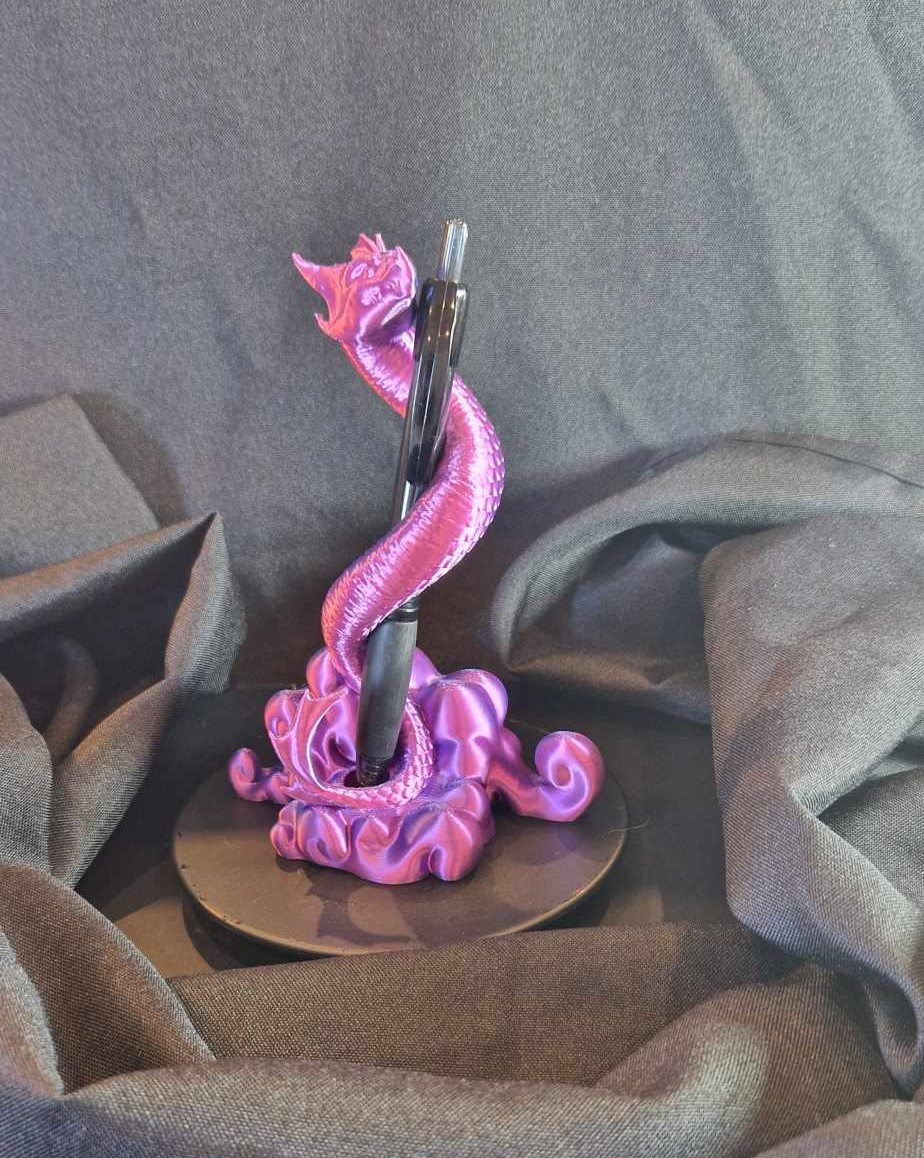 Ajoutez une touche de fantaisie à votre bureau avec ce support de stylo ou stylet au design draconique. Ce modèle, mélangeant des teintes brillantes rose et argentée, apporte une élégance moderne à votre espace de travail tout en restant fonctionnel. Parfait pour les amateurs de pop culture et les passionnés de créature fantastique.