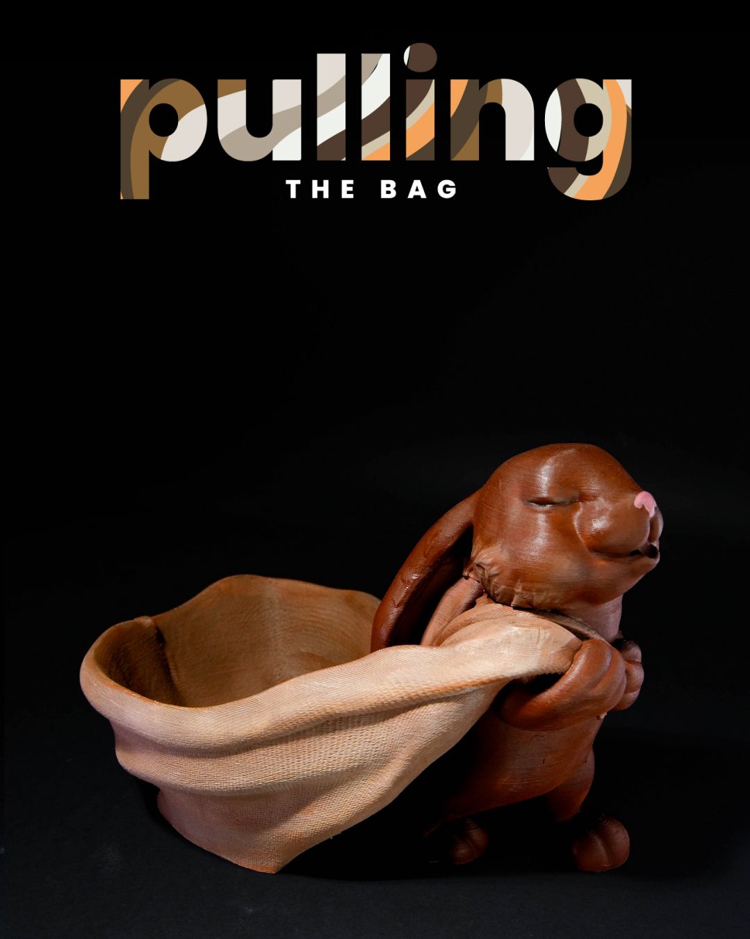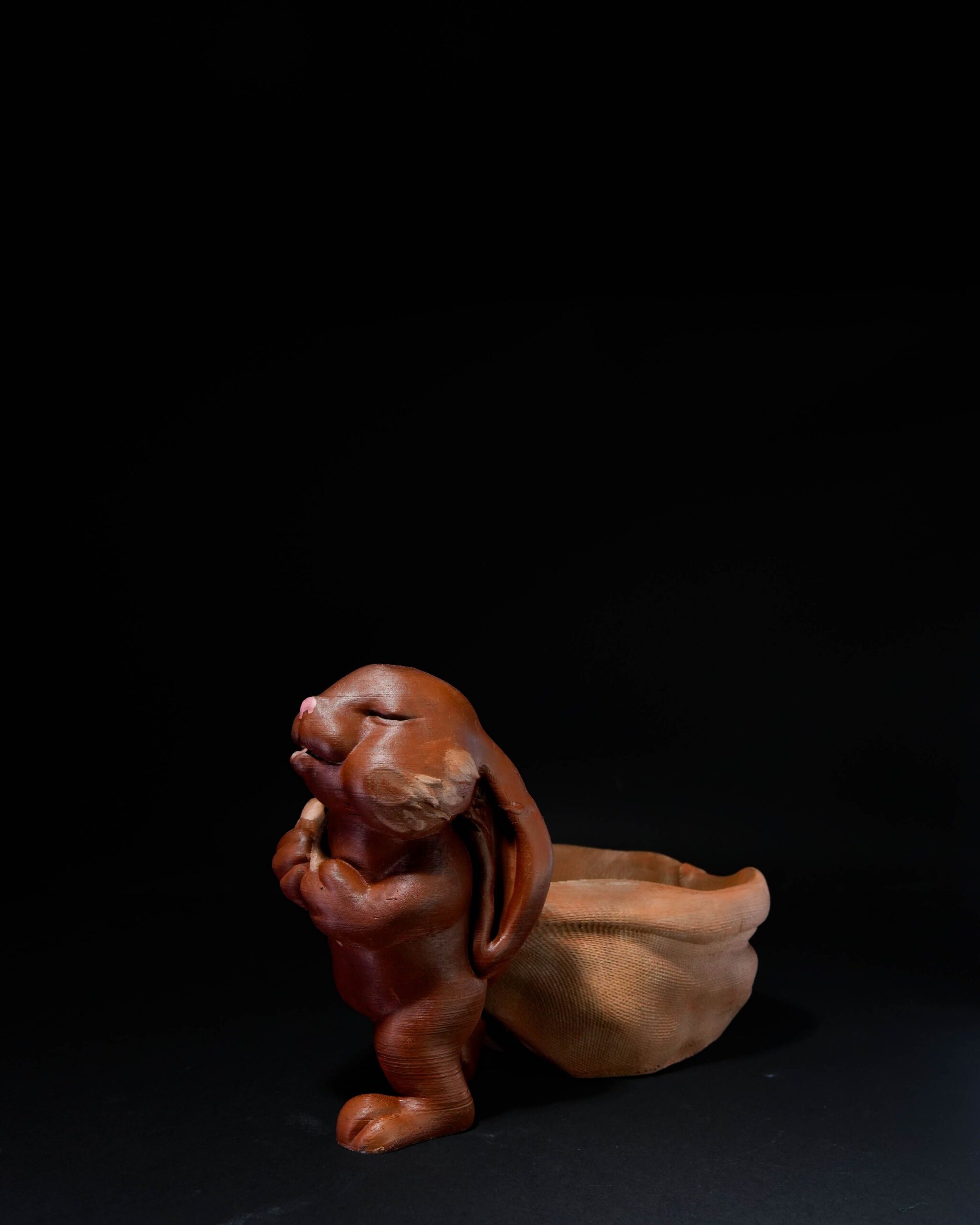 Cute bunny dragging open bag.