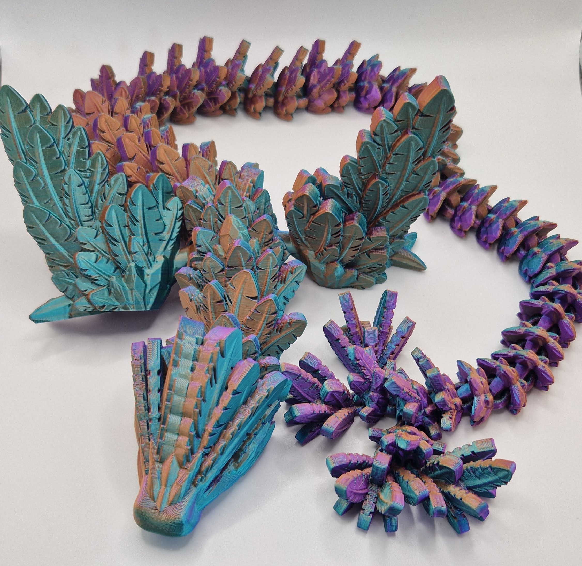 Introducing our 3D printed flying serpent dragon! This articulated masterpiece can fly through the air with ease, impressing everyone who sees it. Our skilled designers have created a unique and well-crafted product that is perfect for collectors, gamers, and fantasy enthusiasts. Articulated for maximum movement and realism, this dragon is sure to be a great addition to any home. Made using high-quality materials, this product is durable, long-lasting, and takes your imagination to soaring heights. The flying serpent dragon is also an excellent gift idea for those interested in fanciful creatures and fantasy adventures. Get your hands on this unique product today!