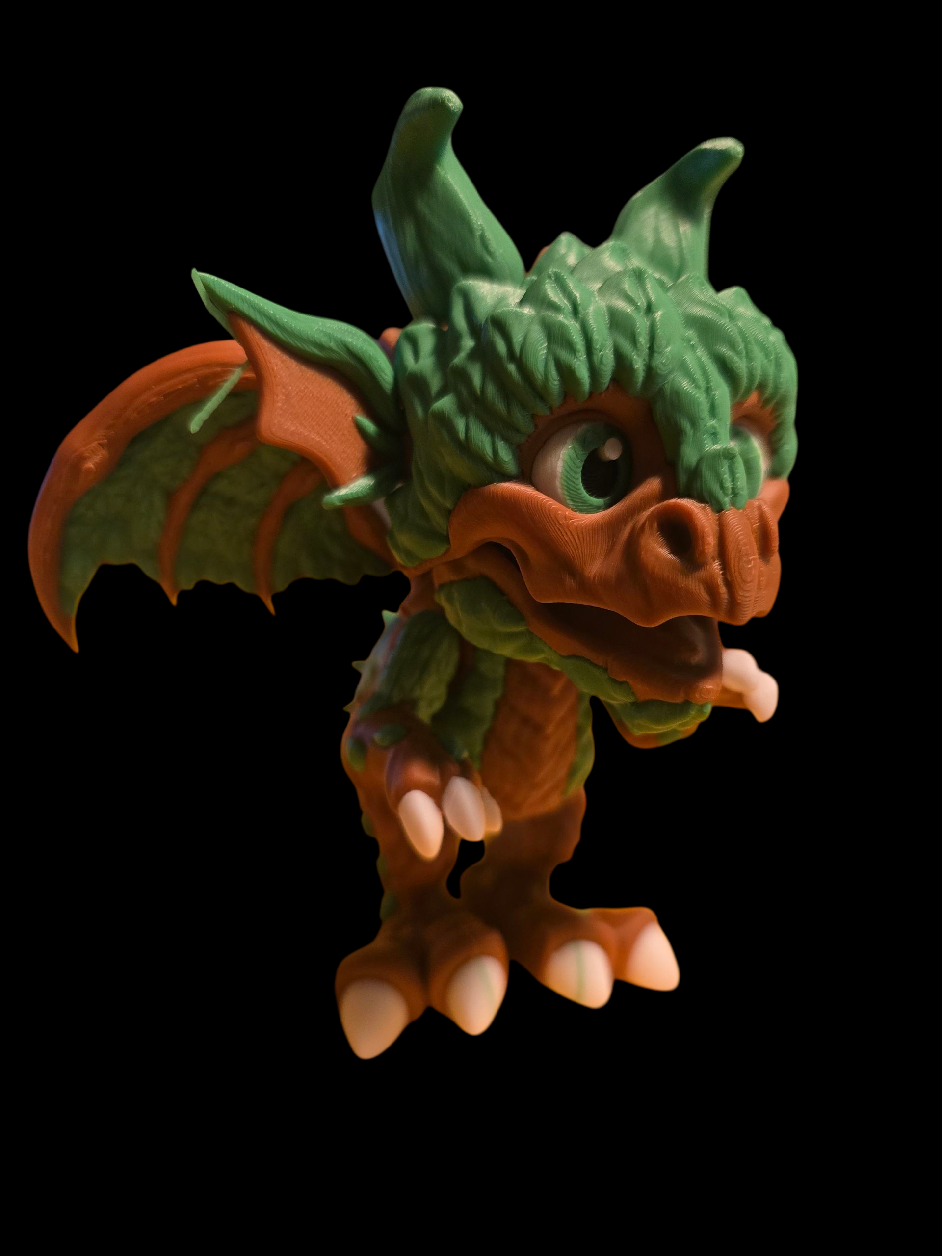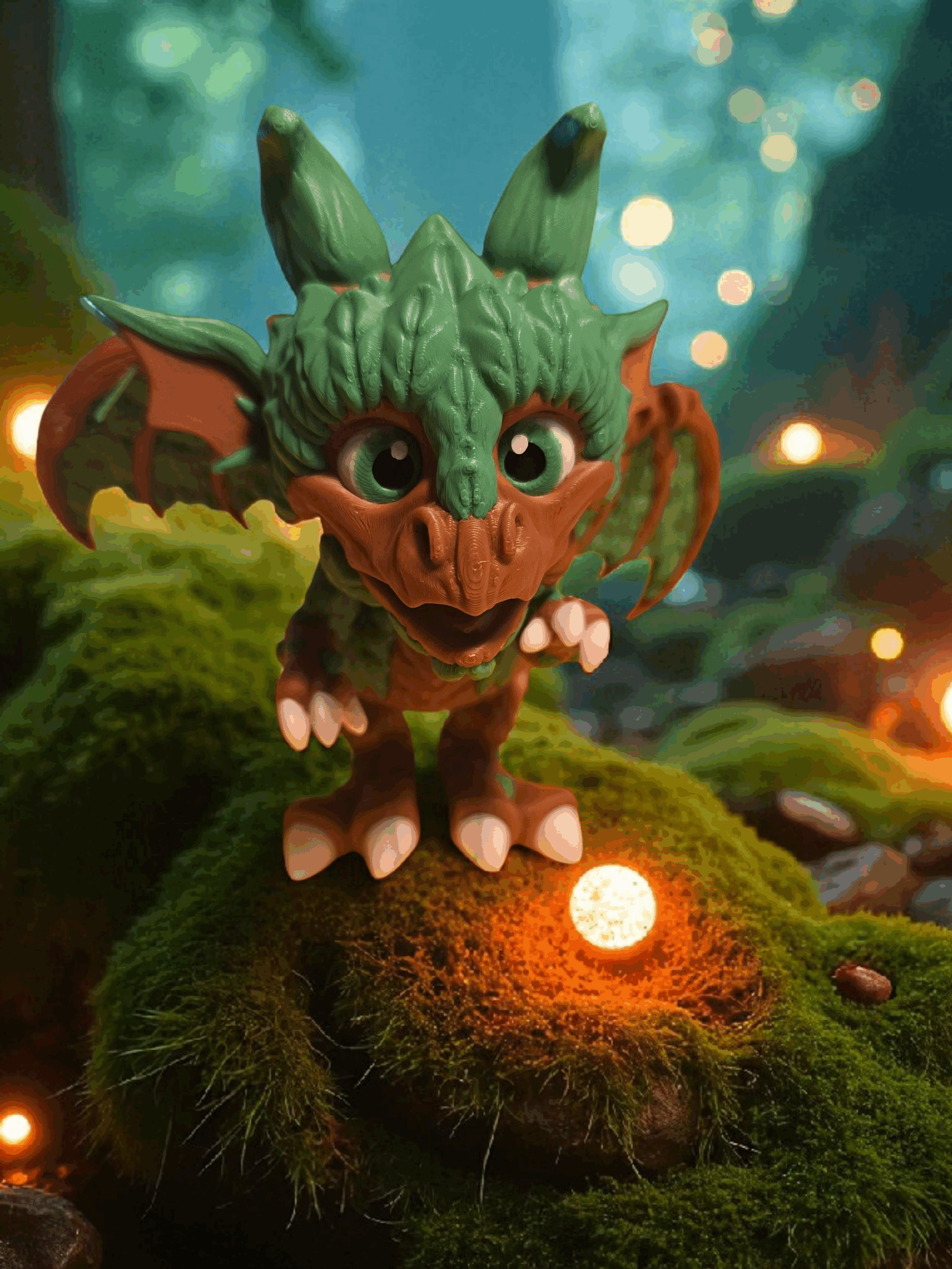 Step into the enchanted glade with the Forest Dragon, a playful yet noble creature born from the heart of the woods. Crafted in earthy green and rich brown tones, this stylized figurine captures the spirit of nature with its leaf-like scales, branch-textured wings, and mossy undertones. Its oversized eyes and animated expression give it a friendly, approachable vibe—more forest companion than fearsome beast.