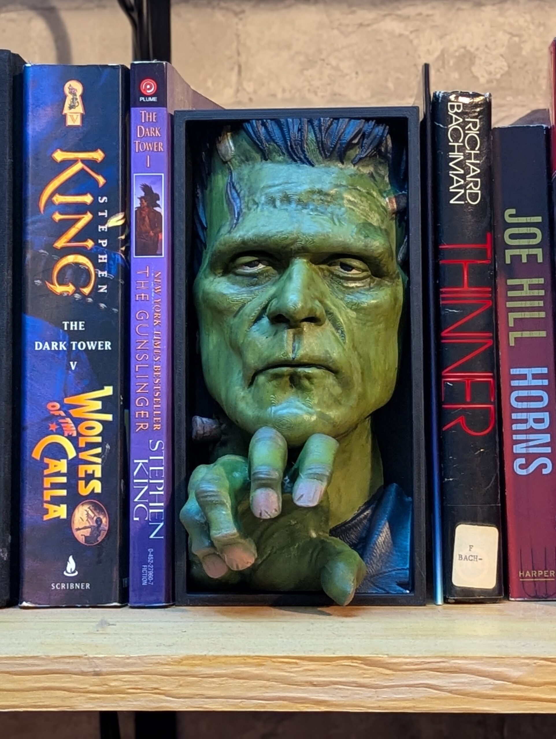Classic Horror Monster, Frankenstein. 4.5″ x 8.5″ book nook FDM-3d printed and hand painted.