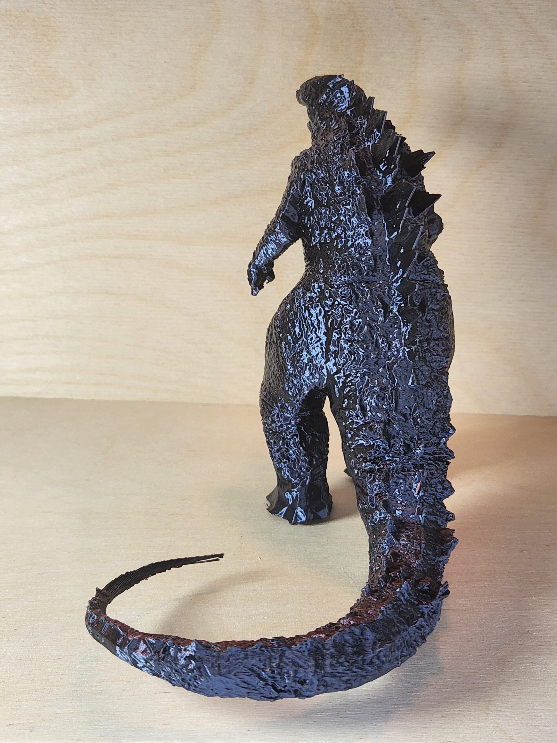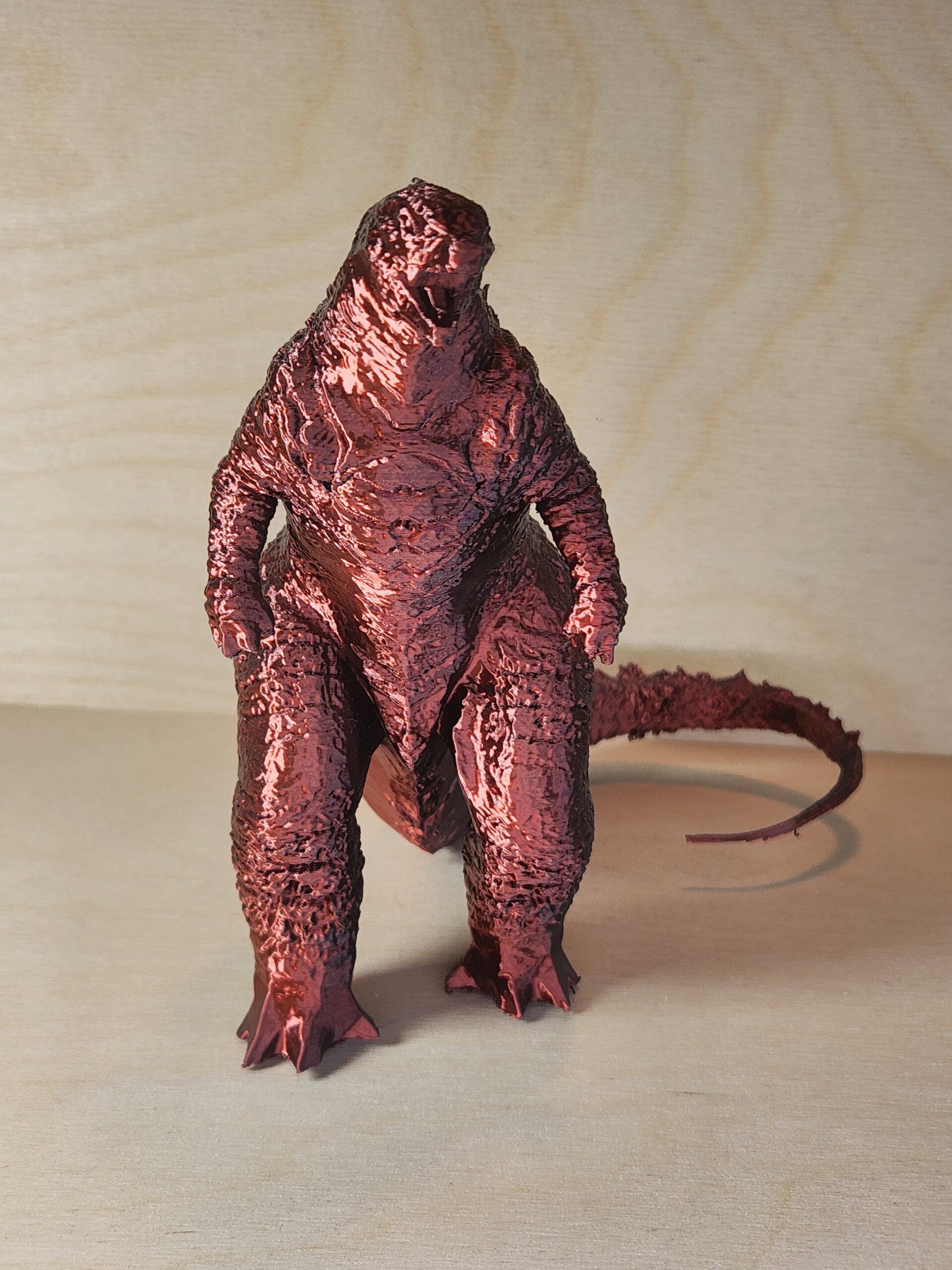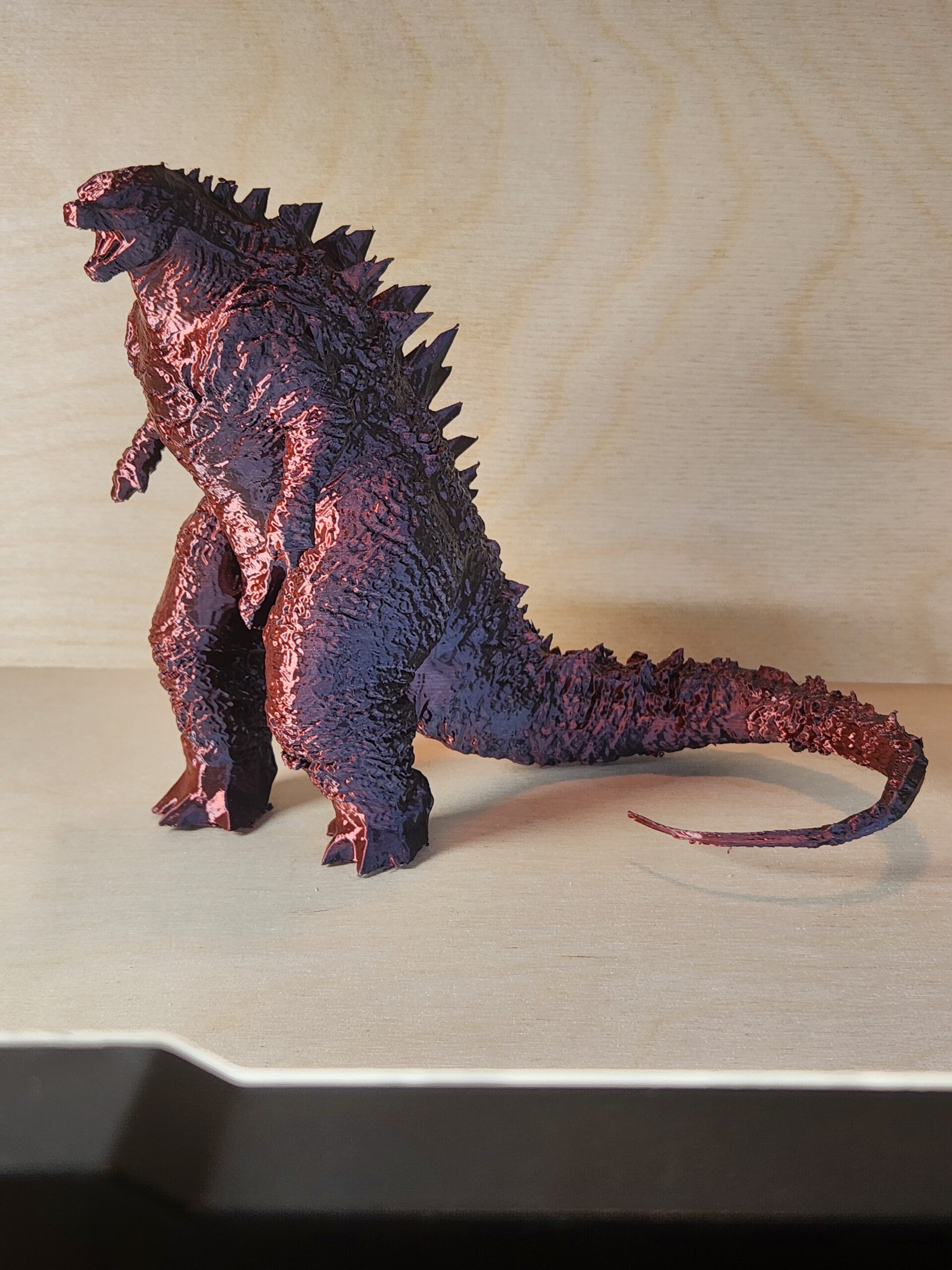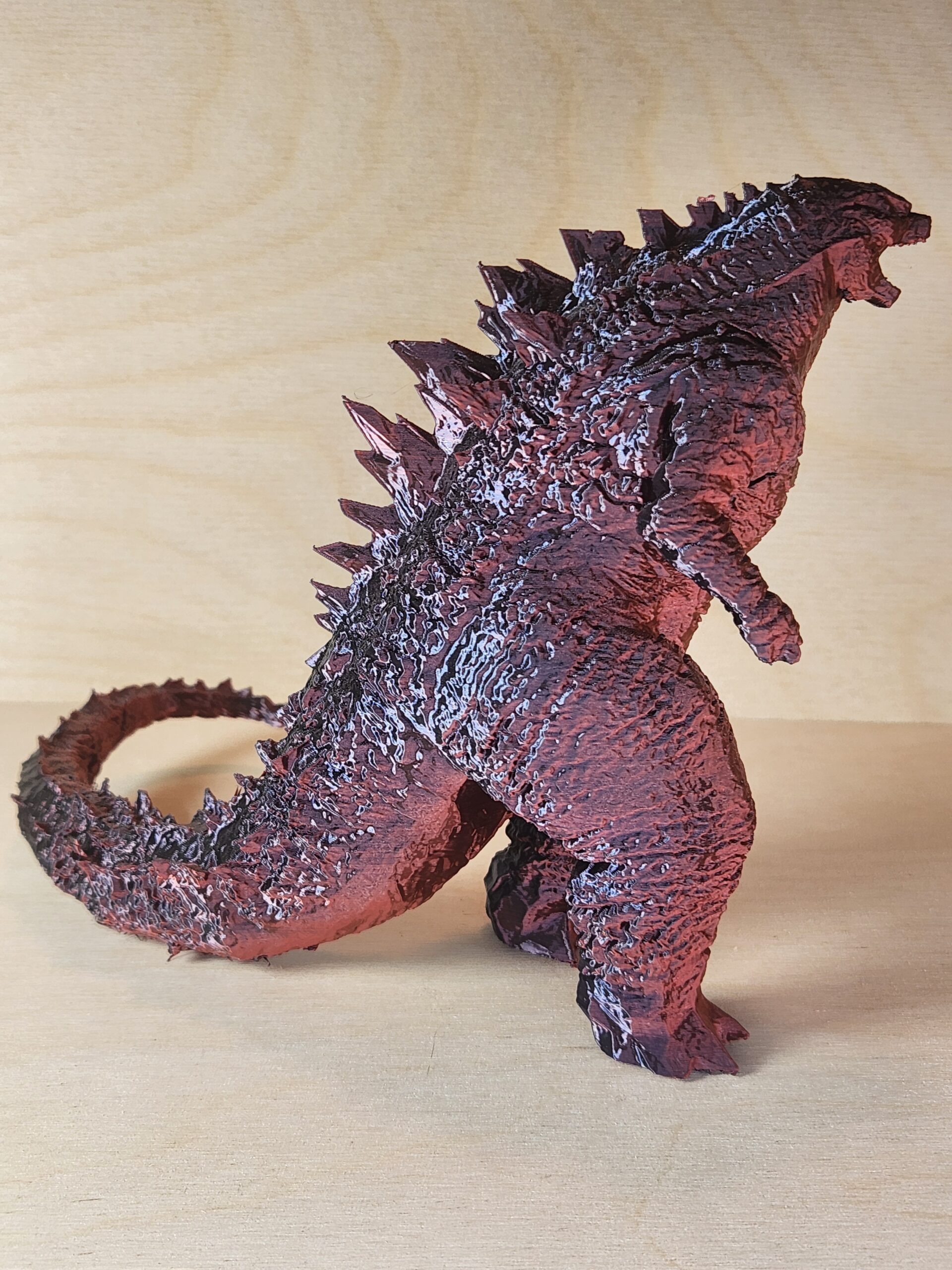 - Red and black metallic Godzilla collectible figurine.
