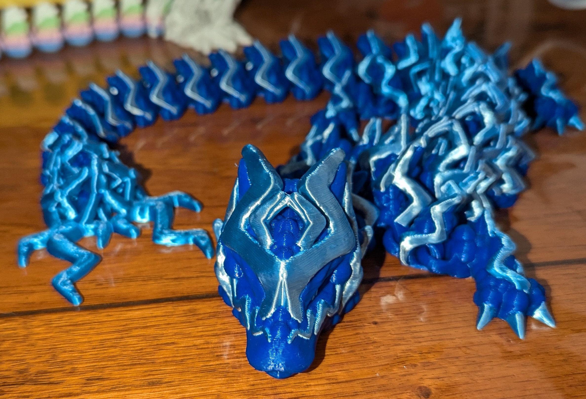 This lightning dragon is dark blue with electric blue highlights. It is over 1 foot long.