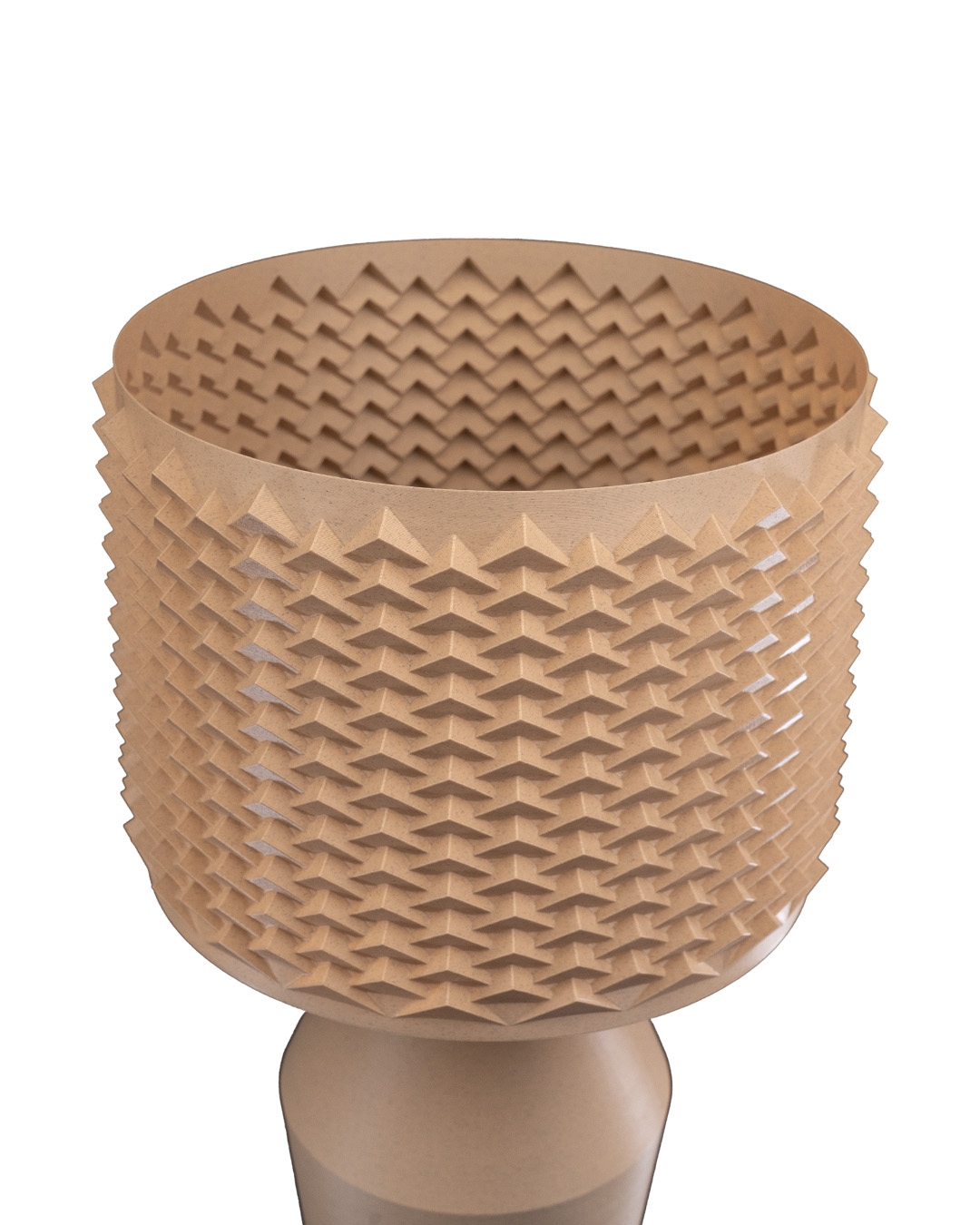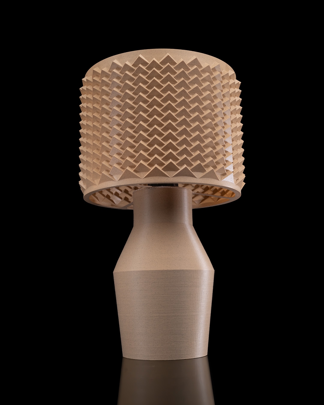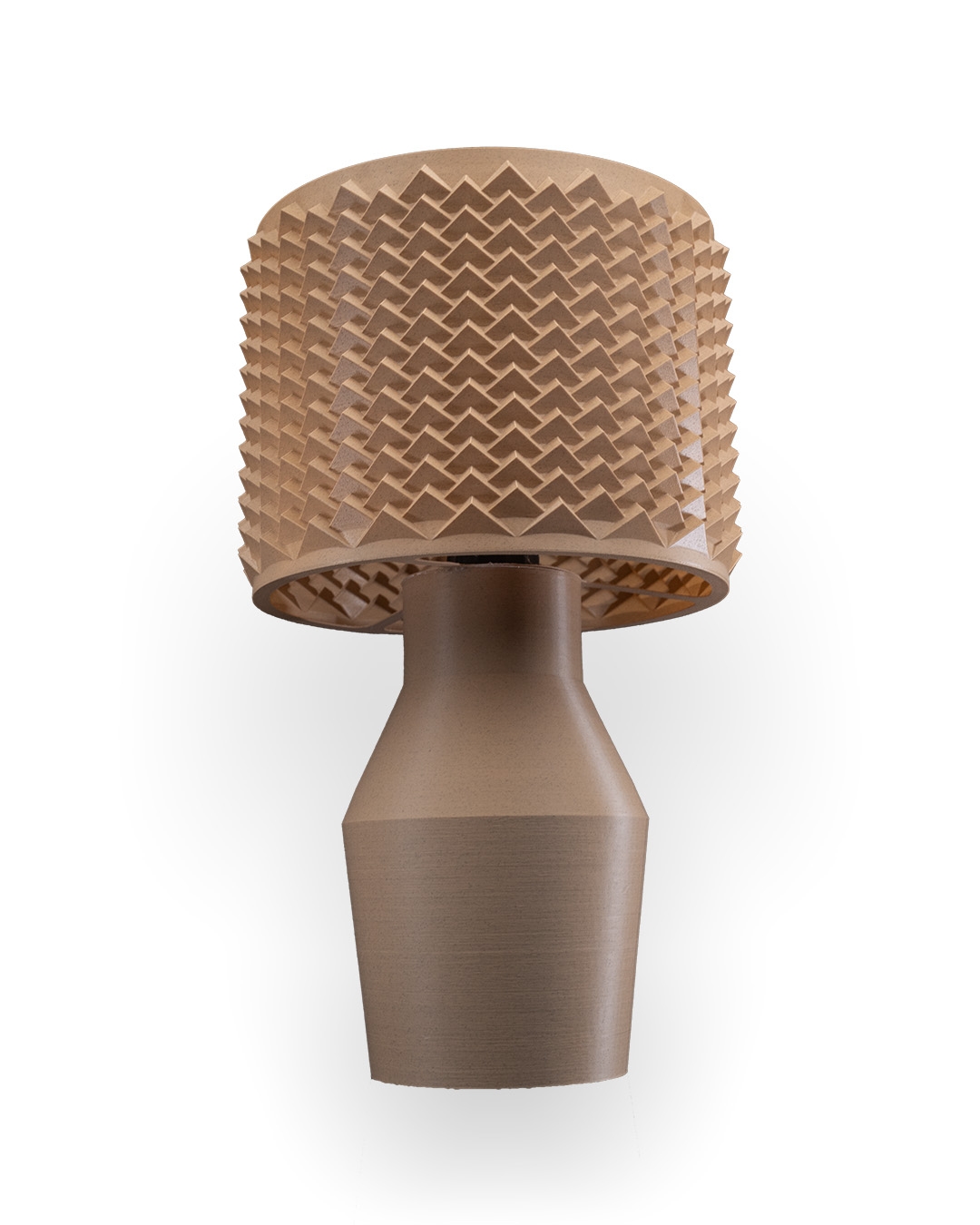 Impresso em plástico PLA que não agride a natureza- plástico biodegradável produzido a partir da fermentação de vegetais (aproximadamente 90 % do produto é produzido em PLA biodegradável, sendo a porcentagem restante composta por outros materiais, como lâmpada, bocal etc.