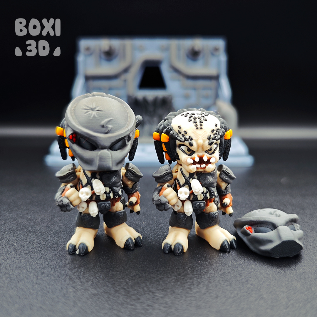Predator min-figures from the popular Alien/Predator movie series. Both come with a removable mask. Can be printed as mini-figures for the diorama or as keychains!