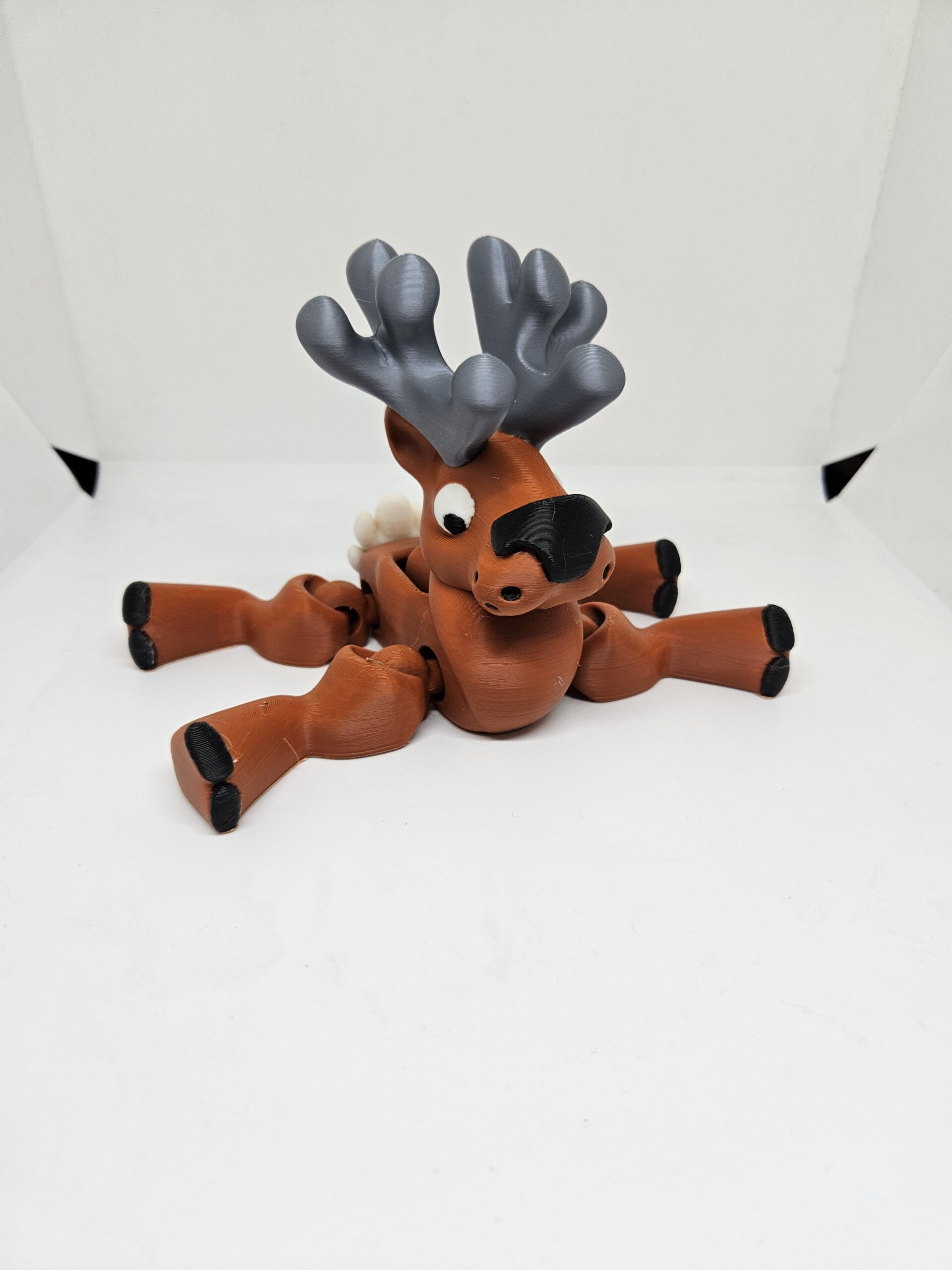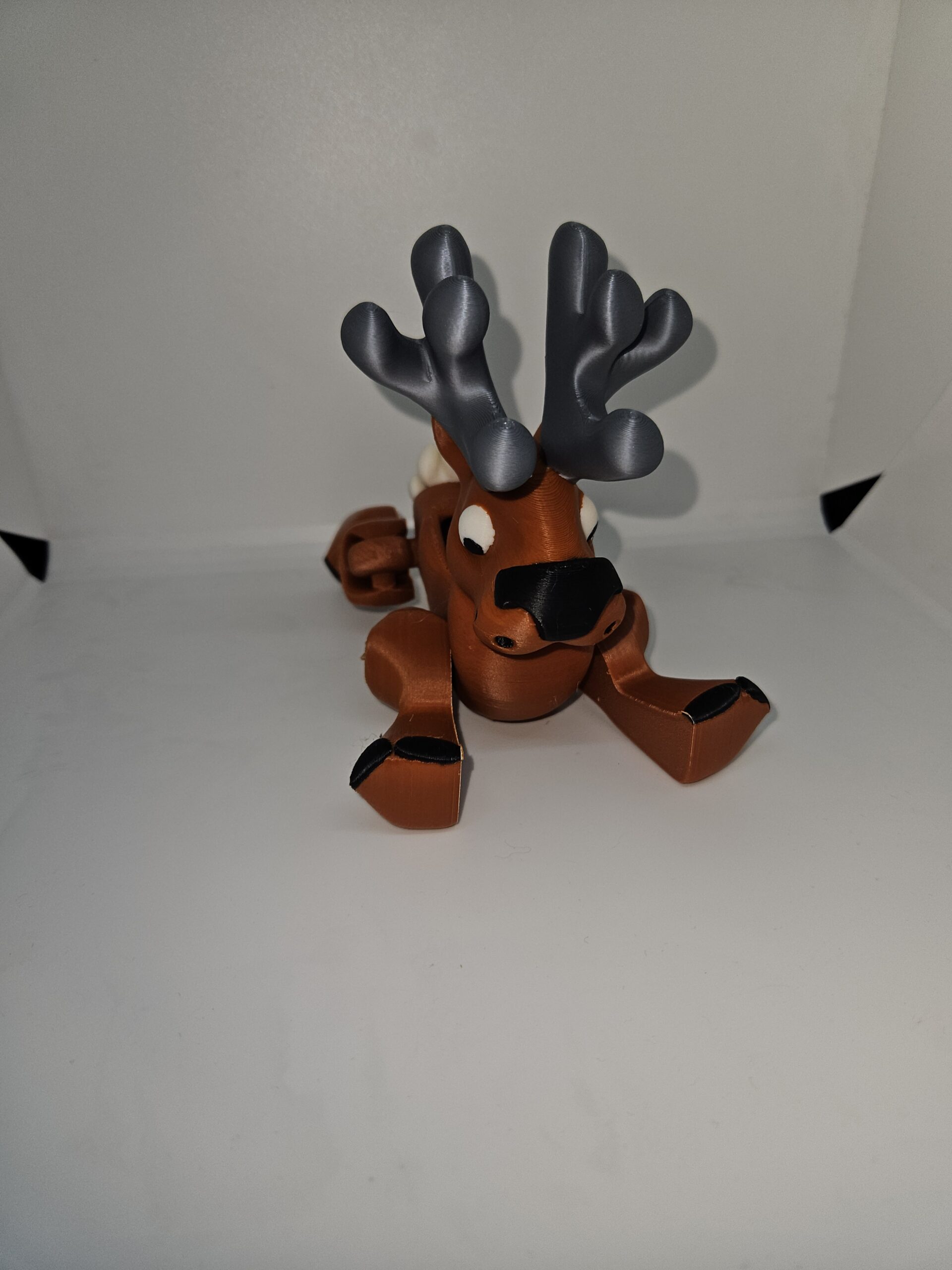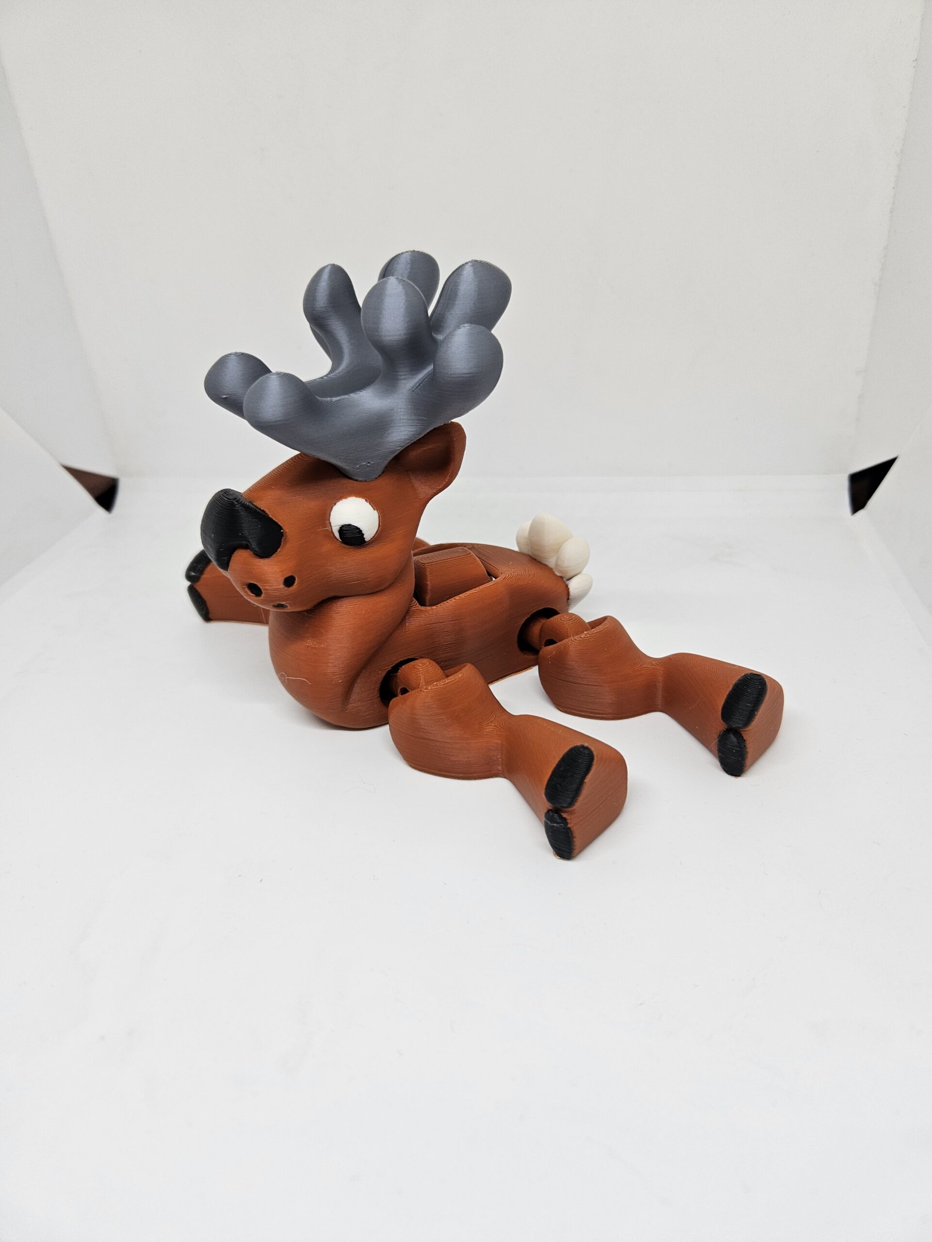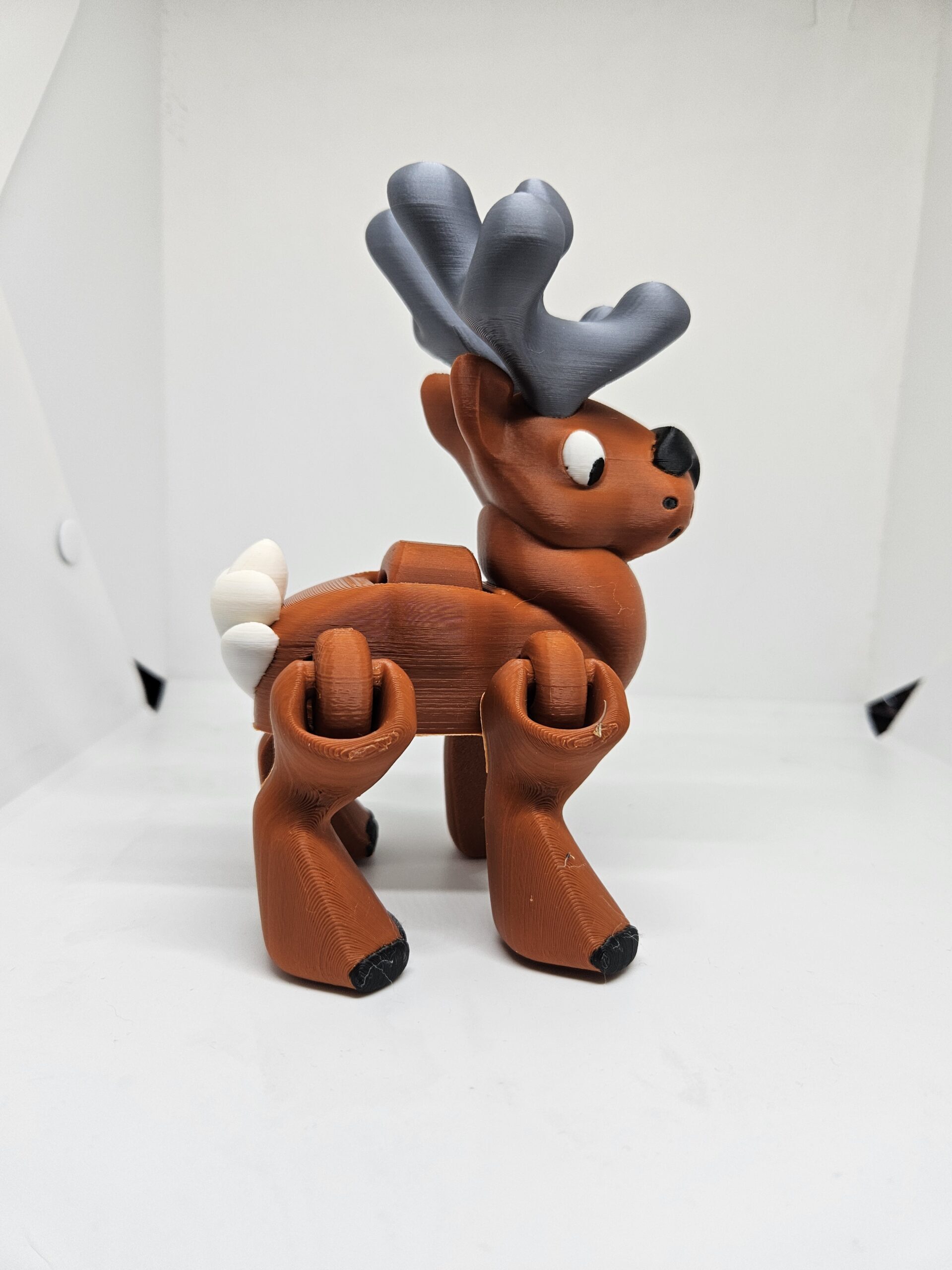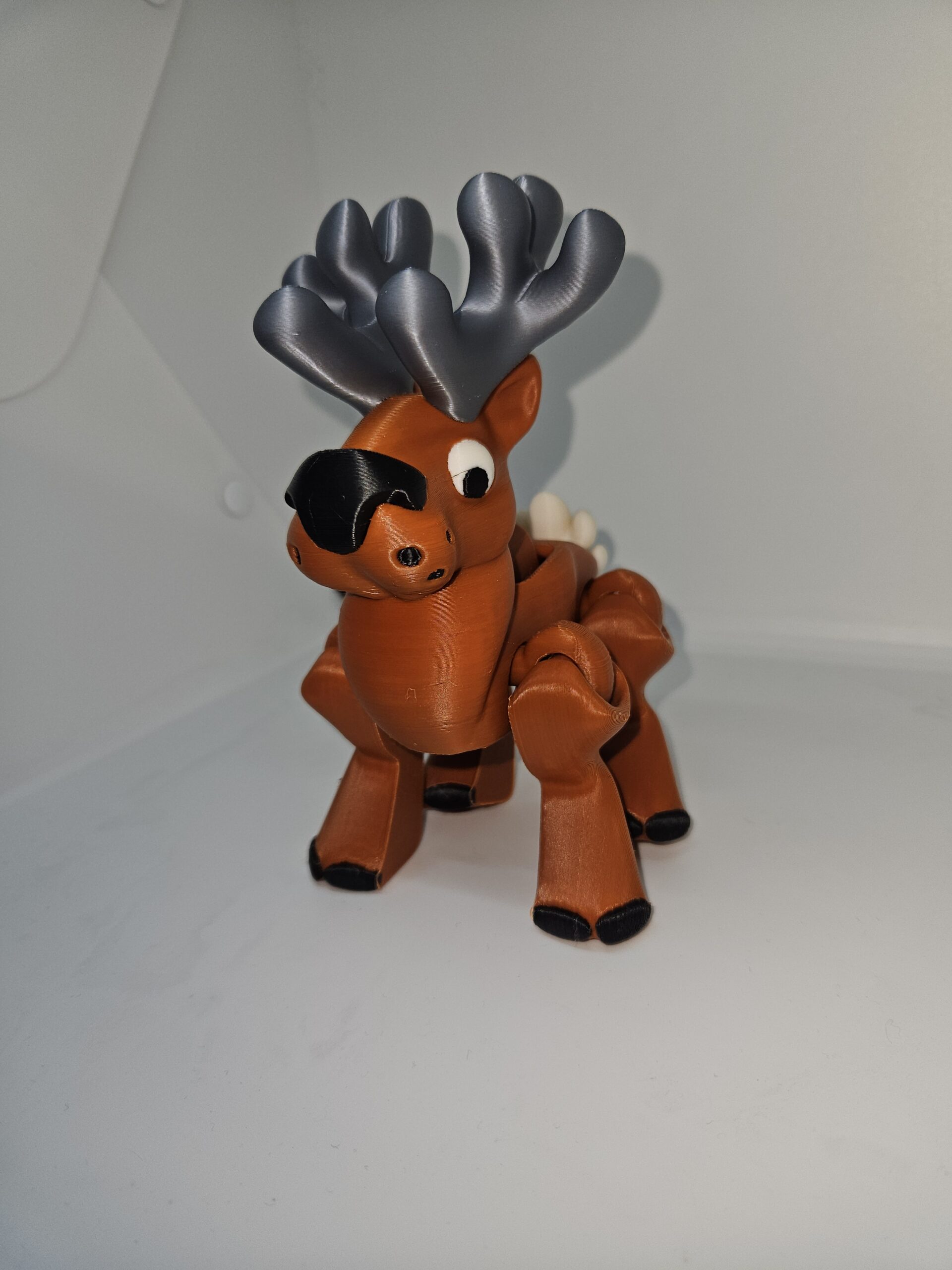 Comes in brown with silver antlers, white eyes and black trim details