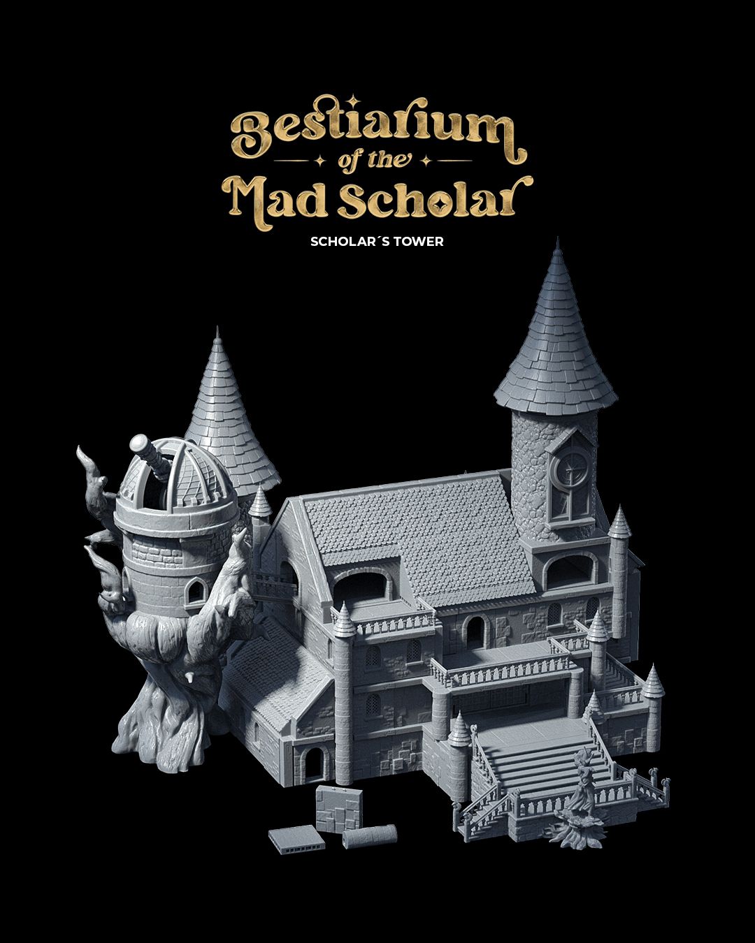 The Scholar’s Tower is an essential addition to campaigns like The Bestiarium of the Mad Scholar, where the tower serves as the heart of the adventure. Designed with intricate details, including weathered stone walls, arcane symbols, and towering spires, this model sets the stage for epic encounters, strategic battles, and immersive storytelling. Whether it’s the home of a reclusive wizard, the site of an ancient library, or the lair of a powerful enemy, the Scholar’s Tower adds depth and realism to your game, allowing players to fully engage with the environment.