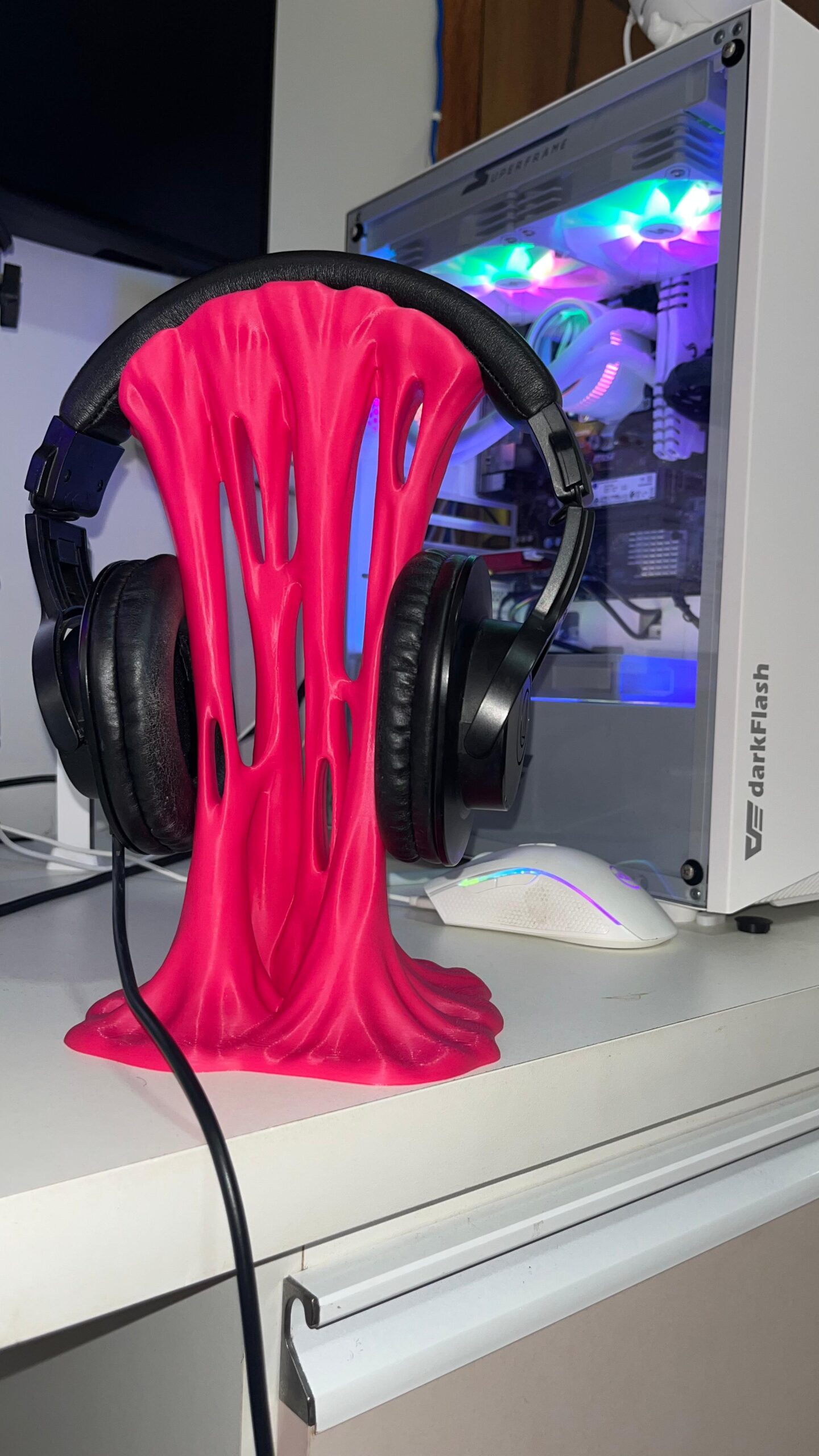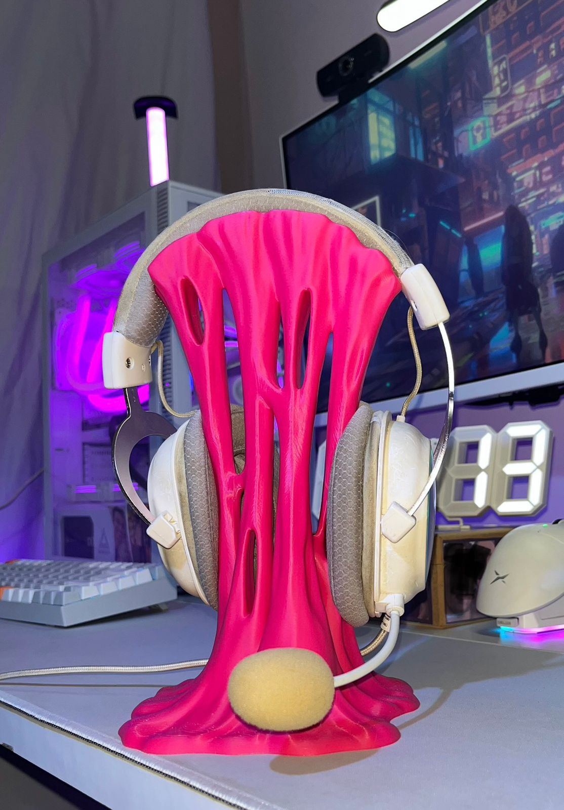 🩷 Suporte para Headset | Headphone Rosa Chiclete – Impressão 3D com Design Gamer para Mesa
