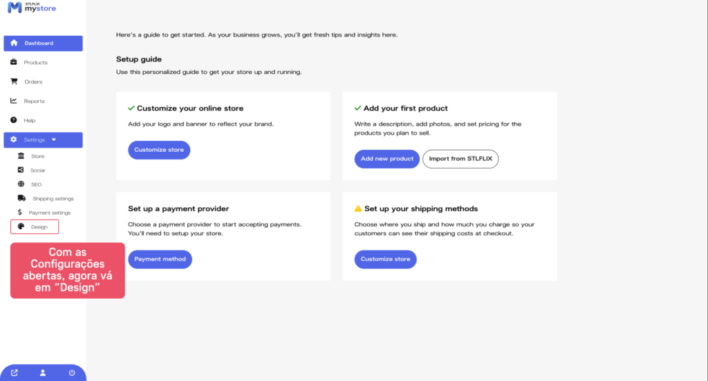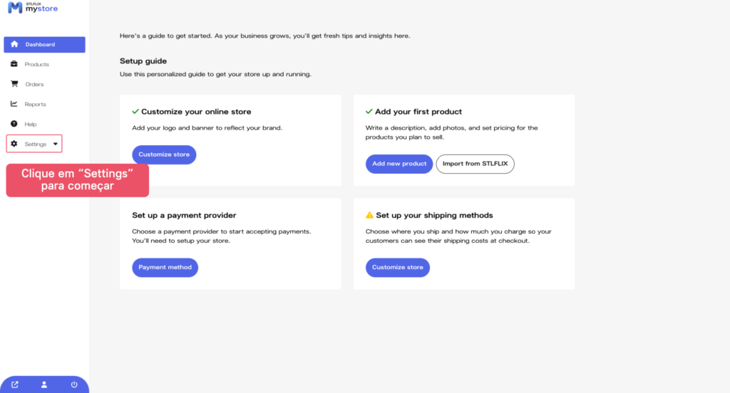 Para começar, clique no botão “Configurações” no menu de navegação superior e selecione “Loja” no menu suspenso. Isso o levará à página de configurações da loja, onde você pode começar a personalizar sua loja.