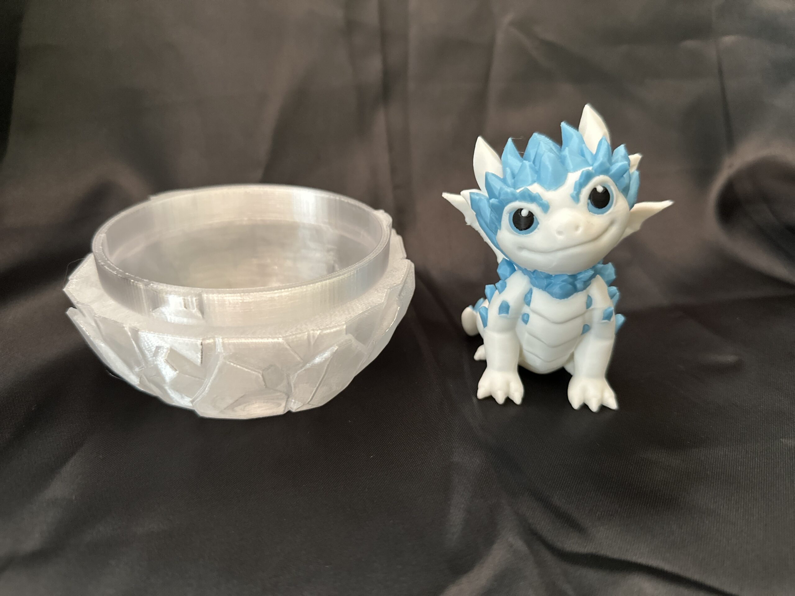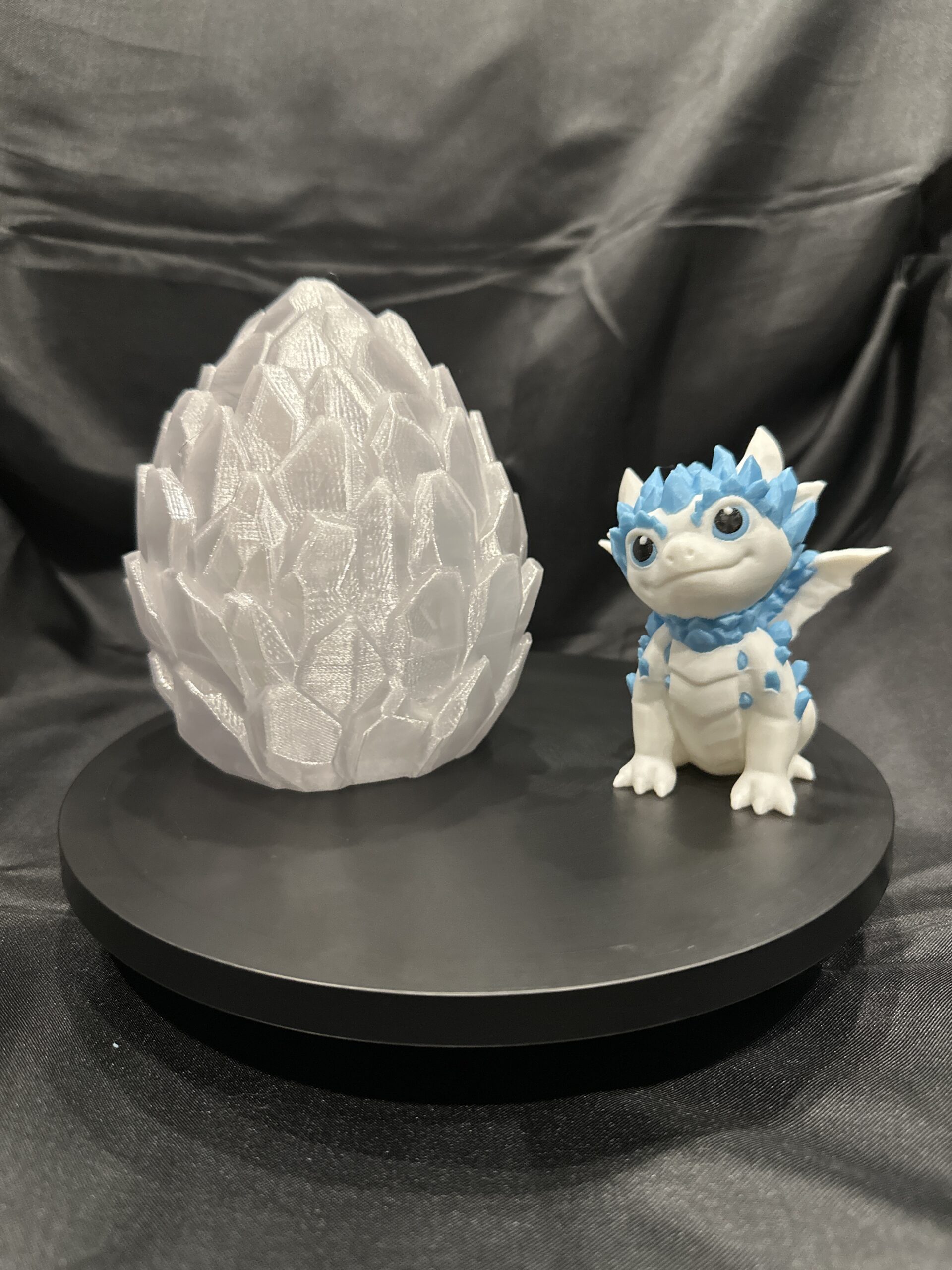 Imagine a miniature crystal dragon, meticulously crafted as a 3D toy, perched regally on a tabletop. Its scales shimmer with iridescent hues, reflecting the surrounding light in a dazzling display. Clutched protectively in its claw is a crystal egg, equally mesmerizing, its facets catching the light and scattering rainbows across the surface. This charming piece would be a captivating centerpiece, a conversation starter, and a testament to the beauty of intricate design brought to life in a miniature scale.